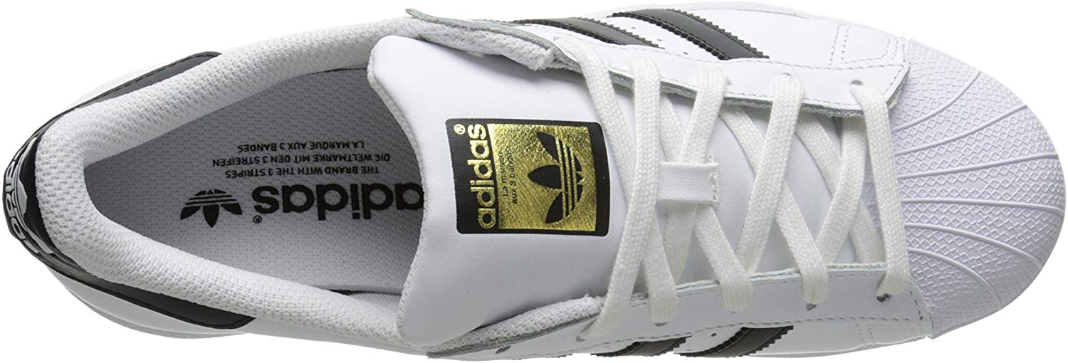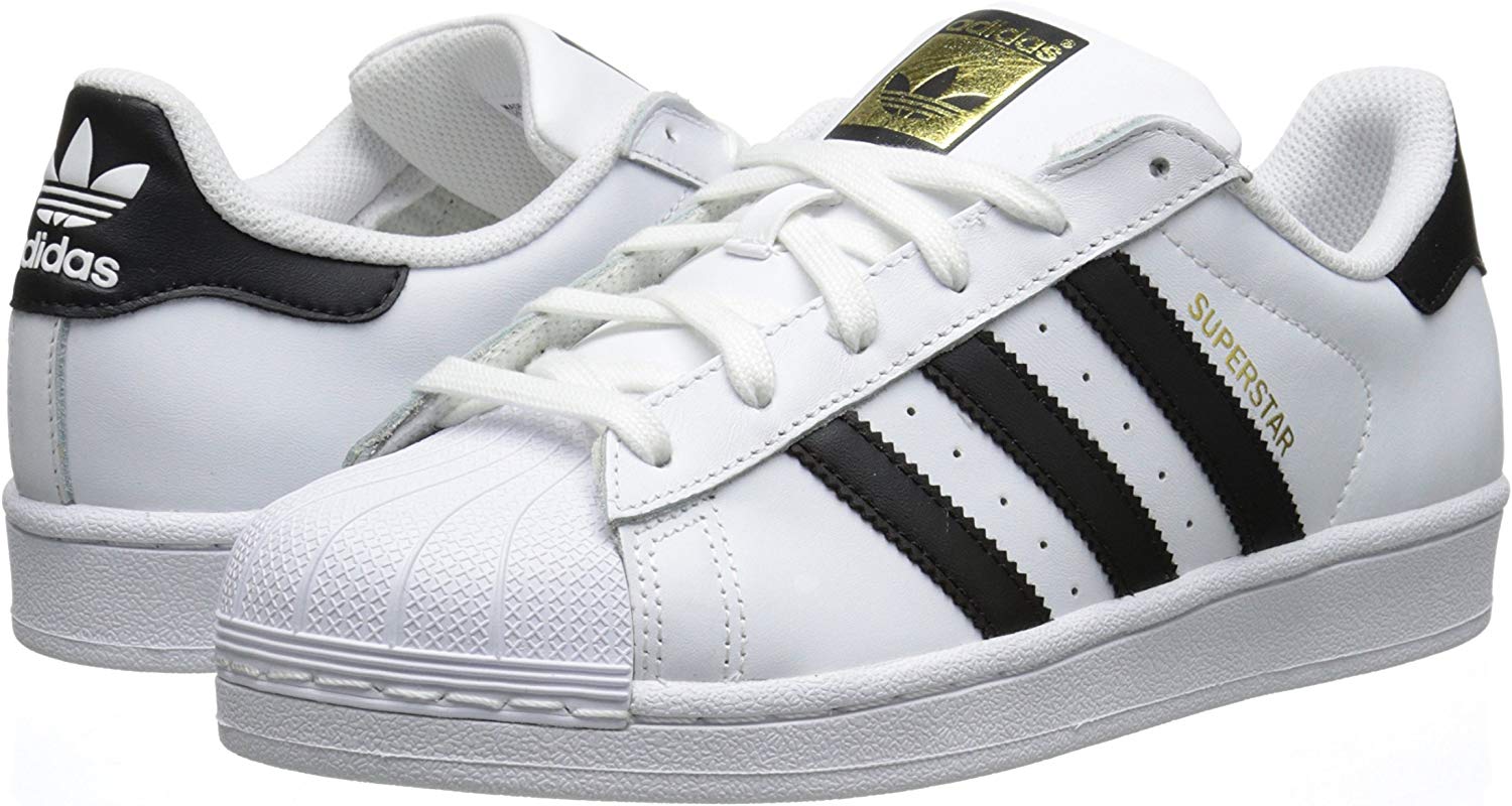 The adidas Superstar sneaker reigns supreme. The fan favorite launched in 1969 and quickly lived up to its name as NBA players laced into the now-famous shell-toe design. These men's shoes come in full grain leather with serrated 3-Stripes and a rubber cupsole.